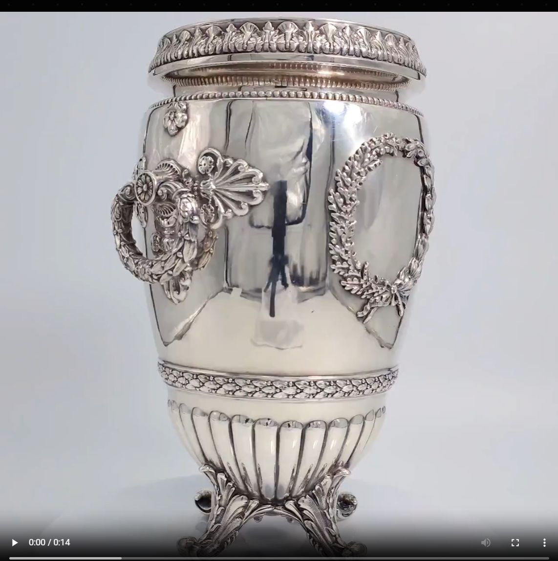 During the late Victorian to early Edwardian periods, silver-plated wine coolers became essential elements of fine dining, symbolizing luxury and sophistication. The laurel wreath motif and claw-footed design reflect classical influences, Napoleonic revival antiques, and the rich metalwork traditions of 19th-century France. This piece embodies the elegance of French silver-plating techniques and would have been a prized bar accessory in grand European estates.