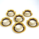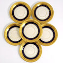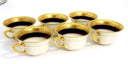Made in Bavaria, Germany between 1925-1939. PROVENANCE: From estate sale of former Hollywood executive in August 2024, Los Angeles, California. This 12-piece antique set includes: Set of Six (6) gold encrusted tea cups (2 1/4" (5.72 cm) high) Set of Six (6) matching saucers (6" (15.24 cm) diameter) CONDITION: Excellent antique condition with no scratches, chips, or cracks. Some gold...