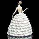 This haute couture inspired porcelain figurine from Royal Doulton's prestigious House of Worth collection channels the glamour of mid-century Vogue fashion editorials, blending the cinematic elegance of Dior's sculptural gowns with Balenciaga's architectural mastery. Drawing inspiration from the exquisite craftsmanship of McQueen, the dramatic silhouettes of Givenchy, and the timeless sophistication of Chanel, this statuette is a celebration of high...
