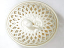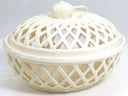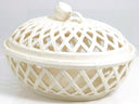 For collectors of fine English creamware and admirers of Georgian revival elegance, this Hartley Greens & Co. Leeds Pottery reticulated covered bowl is a rare statement piece. Handcrafted in England using revived 18th-century techniques, this openwork lattice basket exemplifies timeless sophistication with its pierced body, classic ivory glaze, and delicate fruit-shaped finial. Note how in our photos, the interplay of...