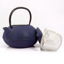 This Dark blue cast iron teapot, reflects traditional Japanese craftsmanship. Ideal for brewing loose-leaf tea, this teapot includes a matching lid and a stainless steel mesh infuser. Its durable cast iron construction ensures even heat distribution, keeping your tea warm for extended periods. Details: Material: Cast iron Color: Deep blue with a textured surface Includes: Cast iron teapot Matching lid...
