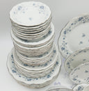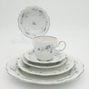 Beautiful pattern accented with delicate light blue flowers on a white background and platinum trim. Johann Haviland's Blue Garland (Bavarian backstamped) is elegantly sculpted, making it easy to see why this pattern has remained immensely popular since its inception. It's perfect as a wedding gift, house warming, or inheritance. In great condition free from chips, cracks, breaks, stains or discoloration,...