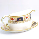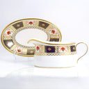 Handcrafted by England's Royal Crown Derby, this Derby Border gravy boat and underplate showcases the precision of discontinued fine bone china from their prestigious 52-year production run. This set includes: One (1) gravy boat with elegant pouring spout - 8.25" length One (1) matching underplate/relish tray - complements serving presentation Each piece demonstrates Royal Crown Derby's collector-grade craftsmanship with intricate...