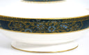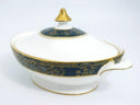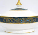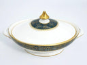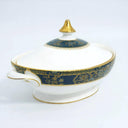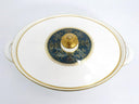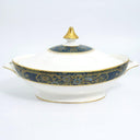 Elevate your dining experience with this exquisite Royal Doulton Carlyle Oval Covered Vegetable Bowl. Crafted from fine bone china, this serving dish features the distinguished Carlyle pattern, renowned for its rich blue and teal borders accented with delicate floral designs and elegant gold trim. Produced in England between 1972 and 2001, this piece embodies timeless sophistication and exceptional craftsmanship. Details:...
