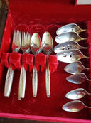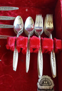 Beautiful vintage 71 Piece flatware, Service For 12, with serving spoons. Features a brushed finish with lovely impressed flowers down the handle it is perfect to use as a set only or addition to your collection, for your must elegant and formal entertainment. You friends and family will be entertained with elegance and class. Produced between 1966 - 1976. This...