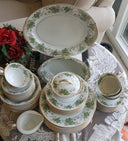 Lovely Daphne by NORITAKE with Hostess set and dinnerware set for 8 guests is very elegant, It features gorgeous and delicate Tan and white flowers, with Large Green Leave encircling the fine and elegant white background. 53 Pieces Noritake Dinnerware, 6 Piece Place Setting, For 8 Guests, Gold Trim, and is Wedding Gift Ready. Made in Japan Pattern Number: 5312...