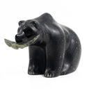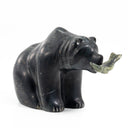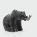 This carved soapstone bear by Alaskan artist Bill Talmadge captures a timeless Arctic subject—a bear catching fish—rendered in contrasting dark and light green soapstone. Talmadge's work continues the indigenous carving tradition that has flourished across Alaska and the Arctic regions since the mid-20th century, when soapstone replaced ivory as the primary medium for Native sculptors. This listing includes: • One...