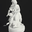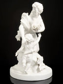 Age placed between 1860-1890s Artist: W. Brownfield (b. 1836), Great Britain Made in: Cobridge, Great Britain Medium: Parian Bisque Porcelain Set Includes Both Figures: - "The Pleasure Stolen": 6"W x 4.5"D x 9"H (15.2 cm W x 11.4 cm D x 22.9 cm H) - "Mother and Child": 6"W x 4.5"D x 9"H (15.2 cm W x 11.4 cm D...