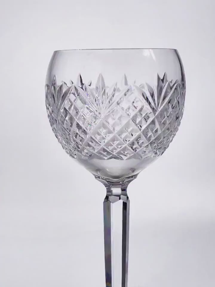 Set of Eight (8) tall wine glasses Height: 7 1/2" (19.1cm) From one of Europe's most celebrated crystal houses, these Killarney pattern hock wine glasses showcase the intricate diamond and fan cutting that distinguished this exclusive collection during its 17-year production run. Waterford's Killarney pattern, produced from 1999-2016, is now...