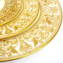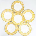 Handcrafted by Wedgwood artisans in Stoke-on-Trent, this set of six dessert plates showcases the prestigious Florentine Gold pattern, featuring mythical gold dragons and intricate arabesque scrollwork on luminous white bone china. Part of a pattern tradition dating to 1874, the W4219 Gold colorway was produced from 1961 to 1986 and discontinued, making these plates increasingly sought after by collectors completing...